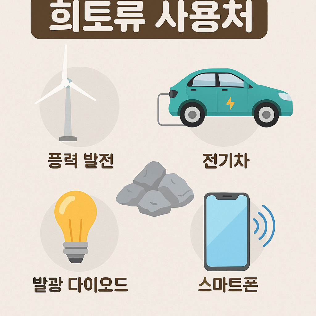 | 스마트폰 | 유로퓸(Eu), 이트륨(Y), 가돌리늄(Gd) | 디스플레이 형광체, 진동모터 |